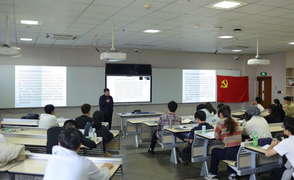 日期:2025-11-0210月28日下午,哲学院第27期入党积极分子培训班第二次理论学习专题讲座在中关村校区公教一楼1605教室举行,通州校区学员于公学二楼103集体参加学习。哲学院院长、党委副书记臧峰宇教授以“习近平文化思想与建构中国自主的知识体系”为主题讲授专题党课。讲座由哲学院党团学办公室主任、党务秘书卫一帆主持。