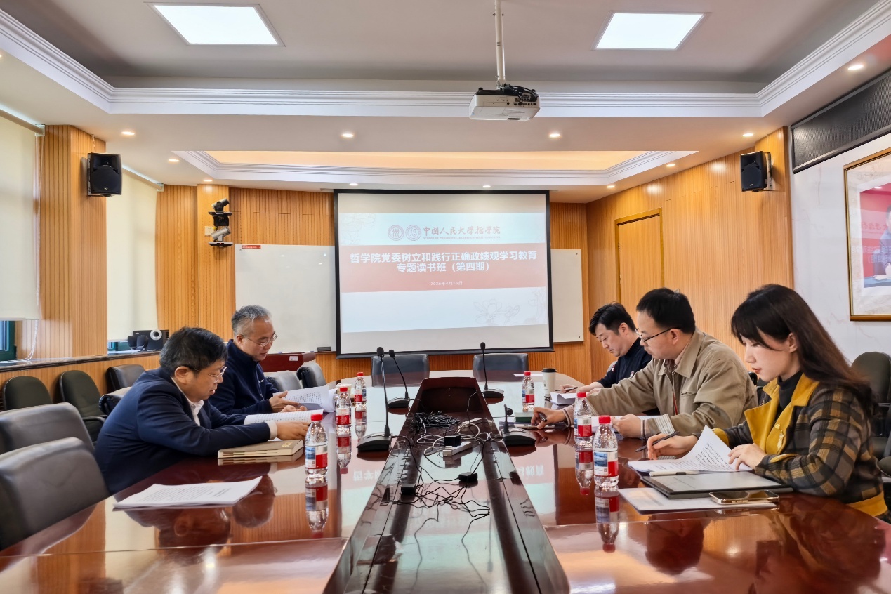 日期:2026-04-172026年4月15日下午,哲学院党委理论学习中心组在人文楼500会议室举办树立和践行正确政绩观学习教育第四期专题读书班,集体研读《习近平总书记地方工作期间坚持正确政绩观生动实践》,开展“让党放心、不负人民”专题研讨。