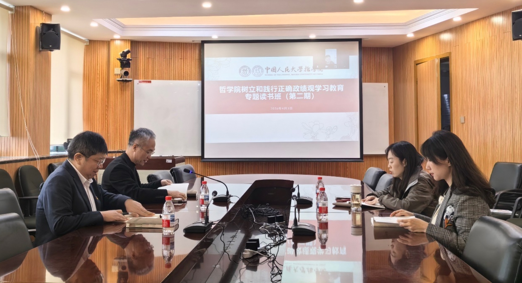 日期:2026-04-062026年4月3日上午,哲学院领导班子树立和践行正确政绩观学习教育第二期读书班在人文楼500会议室举办,集体研读《习近平关于树立和践行正确政绩观论述摘编》第五至第六专题内容。