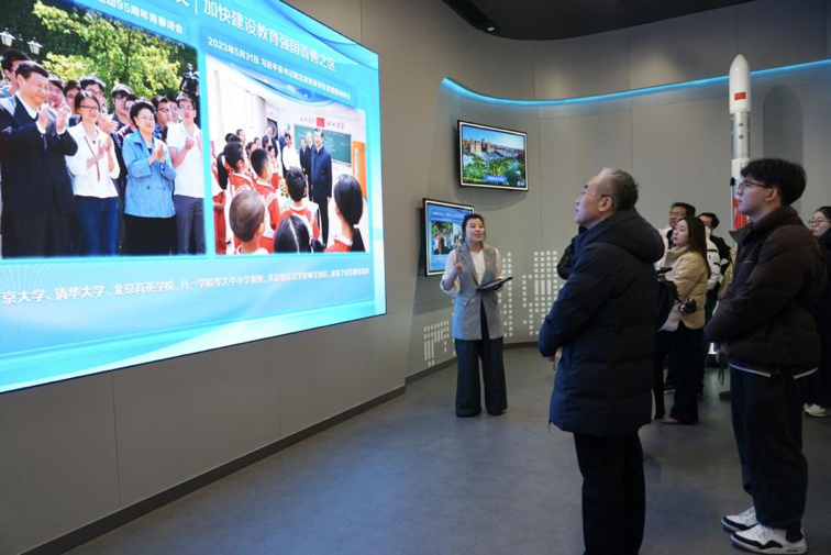 主题教室采用“金句+例证+成效”的展陈模式,并搭配多媒体交互体验,让师生们全景式领略到党的创新理论在京华大地的磅礴实践伟力,其中科技创新板块的展示尤其引发同学们的浓厚兴趣。