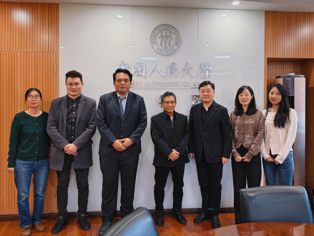 日期:2025-11-062025年11月3日上午,印尼大学可持续发展研究生院院长苏普利亚特纳教授、印尼大学中国-东盟研究中心主任韩培·阿纳尔多·拉塞尔一行到访哲学院,中国人民大学哲学院院长臧峰宇、副院长张霄、副院长原理、外事秘书金瑜萌、中国人民大学伦理学与道德建设研究中心科研秘书陈亚娟参加了会见,共同商议印尼大学可持续发展研究生院及中国-东盟研究中心与哲学院相关合作事宜。