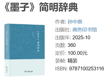 日期:2025-10-09孙中原《〈墨子〉简明辞典》,商务印书馆2025年10月版