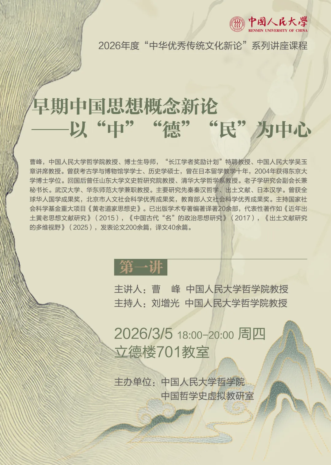 预告丨早期中国思想概念新论 ——以“中”“德”“民”为中心丨“中华优秀传统文化新论”系列讲座课程2026