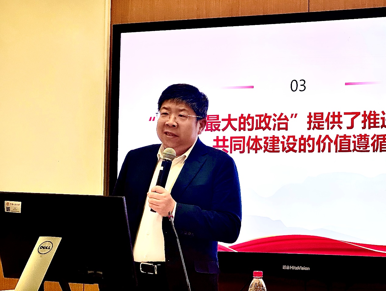 日期:2026-04-112026年4月9日下午,哲学院2026年春季学期党校暨第28期入党积极分子培训班第二次理论学习专题讲座在中关村校区立德楼807教室举行。哲学院院长、党委副书记臧峰宇教授以“深刻理解‘民心是最大的政治’的哲学内涵”为主题讲授专题党课。哲学院党团学办公室主任卫一帆主持讲座。