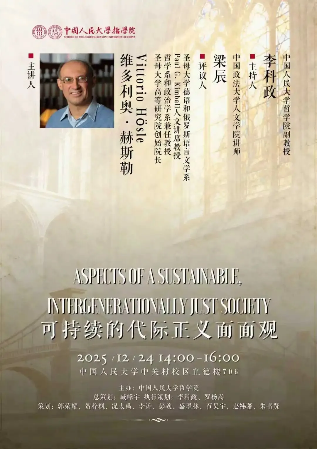 讲座·预告 | Vittorio Hösle:可持续的代际正义面面观