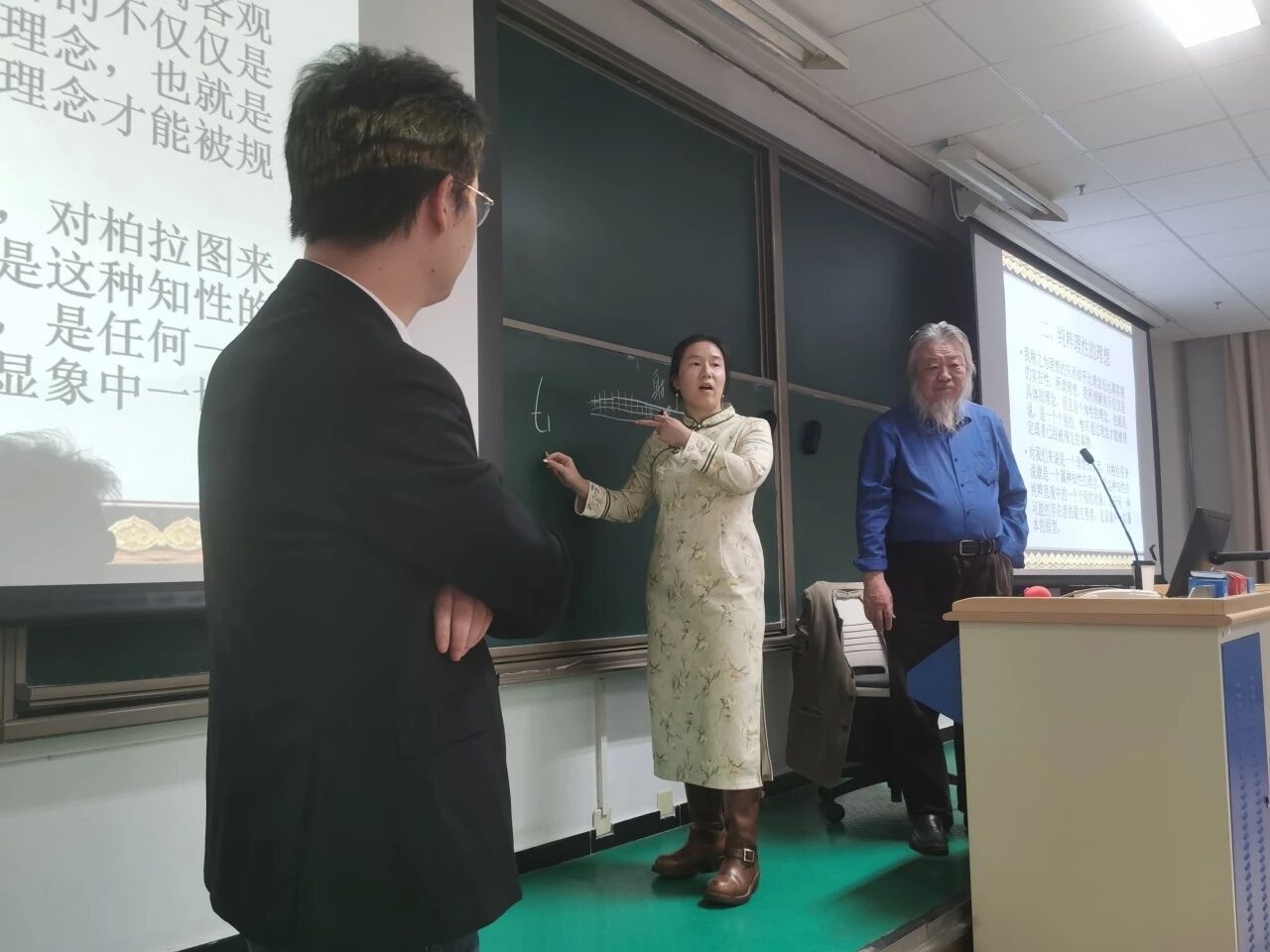 中国人民大学哲学院副教授李科政老师对李秋零教授的讲座内容做出了总结并主持互动提问环节。在提问环节中,听众提出了“‘自由’这一概念在二论背反的部分是否有四名词的错误”、“在作为过程性概念的‘时间’中取一个‘时间点’如何可能”、“‘数学的’和‘力学的’两个词该如何理解”等一系列问题,期间,师生之间的讨论非常热烈、学术氛围非常浓厚。