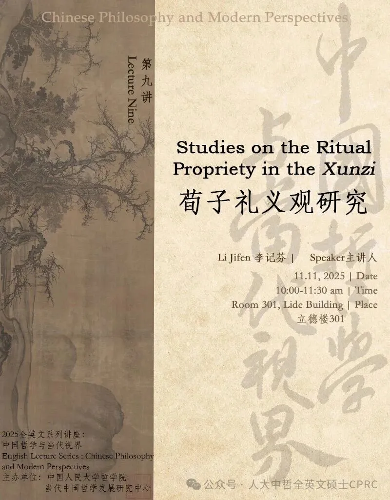 预告·第九讲 | 荀子礼义观研究 | 全英文系列讲座:中国哲学与当代视界·2025
