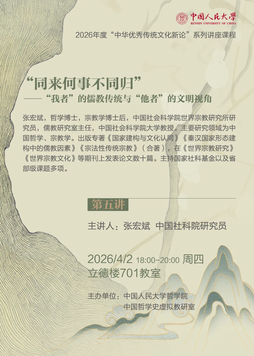 预告|“同来何事不同归”——“我者”的儒教传统与“他者”的文明视角|”中华优秀传统文化新论“系列讲座课程2026