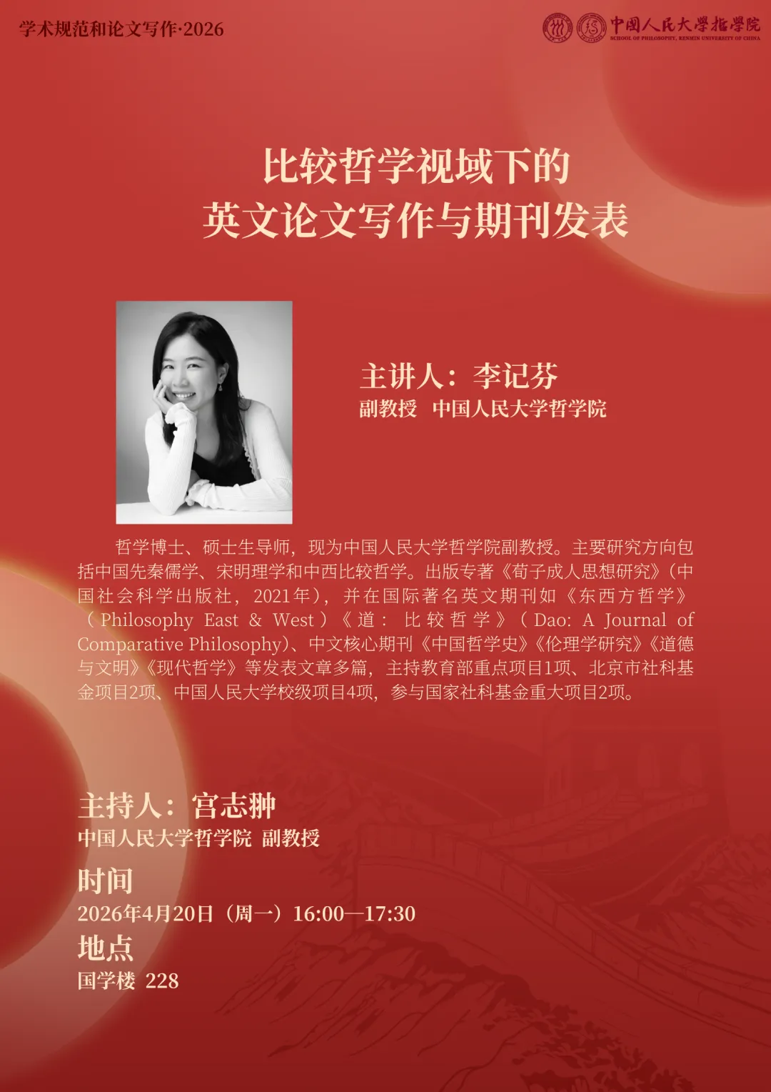 预告 | 比较哲学视域下的英文论文写作与期刊发表