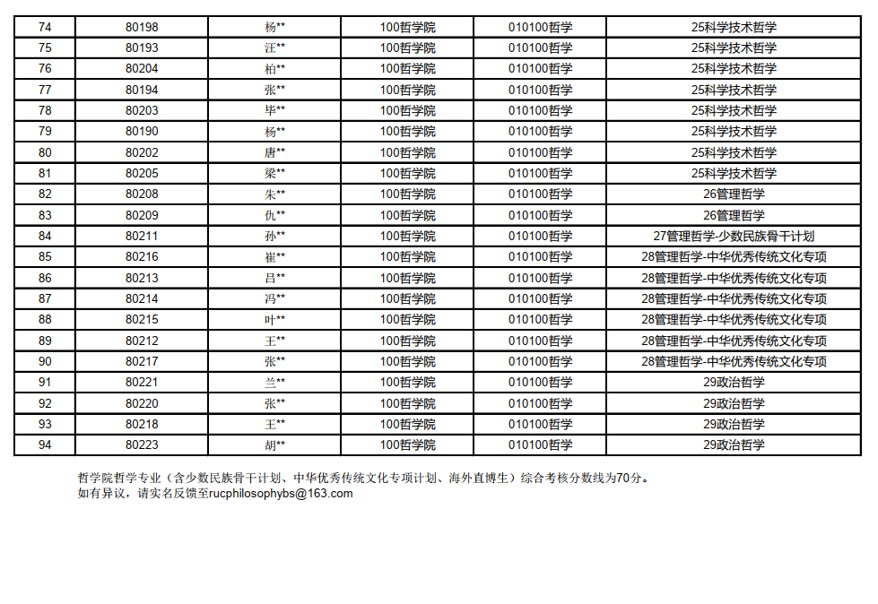 中国人民大学哲学院2026年“申请考核”制博士招生综合考核名单